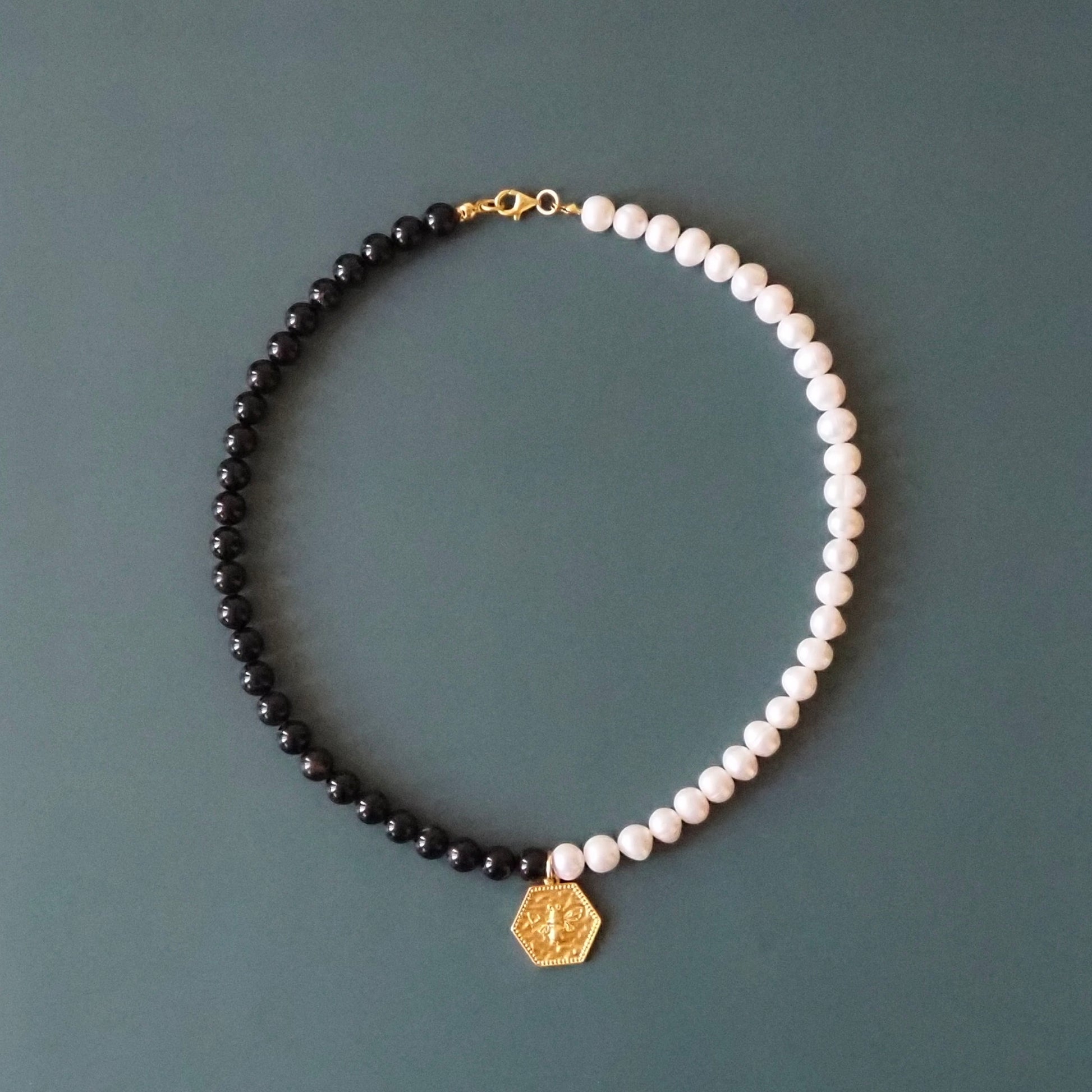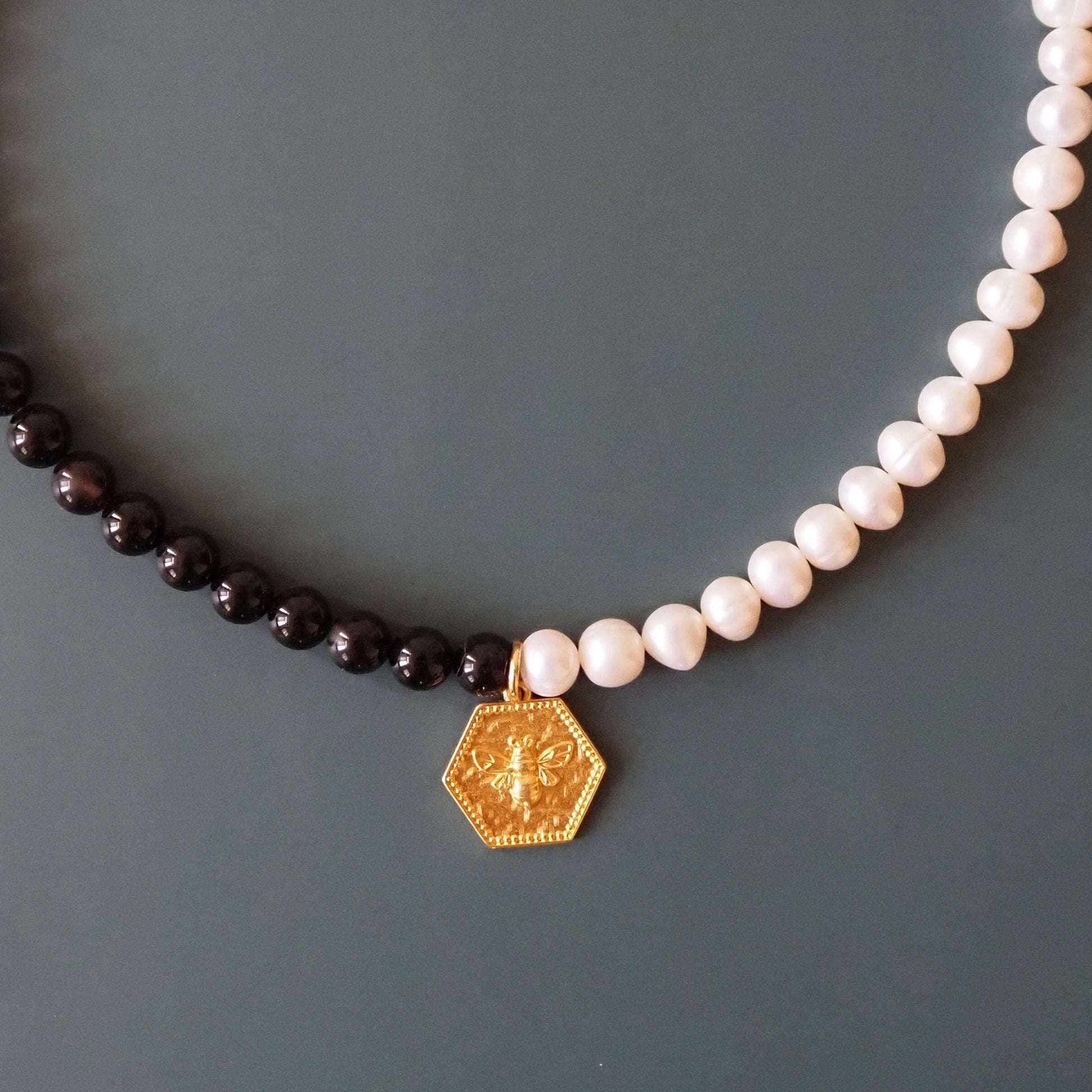 Pieza principal abeja acero inoxidable dorado con acabos de acero dorado / plata bañada en oro.