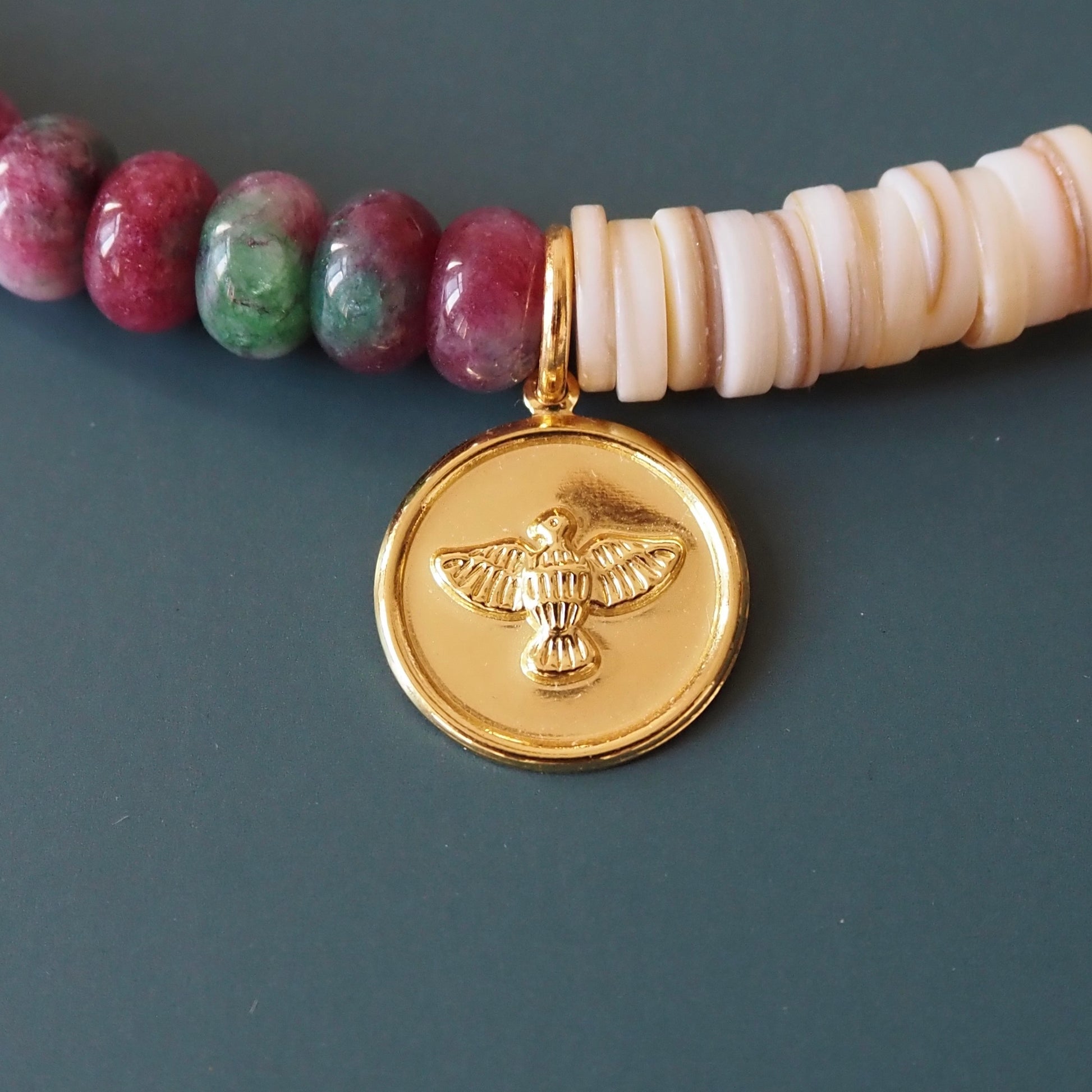Pieza principal pájaro acero dorado inoxidable con acabados de acero dorado / plata bañada en oro.