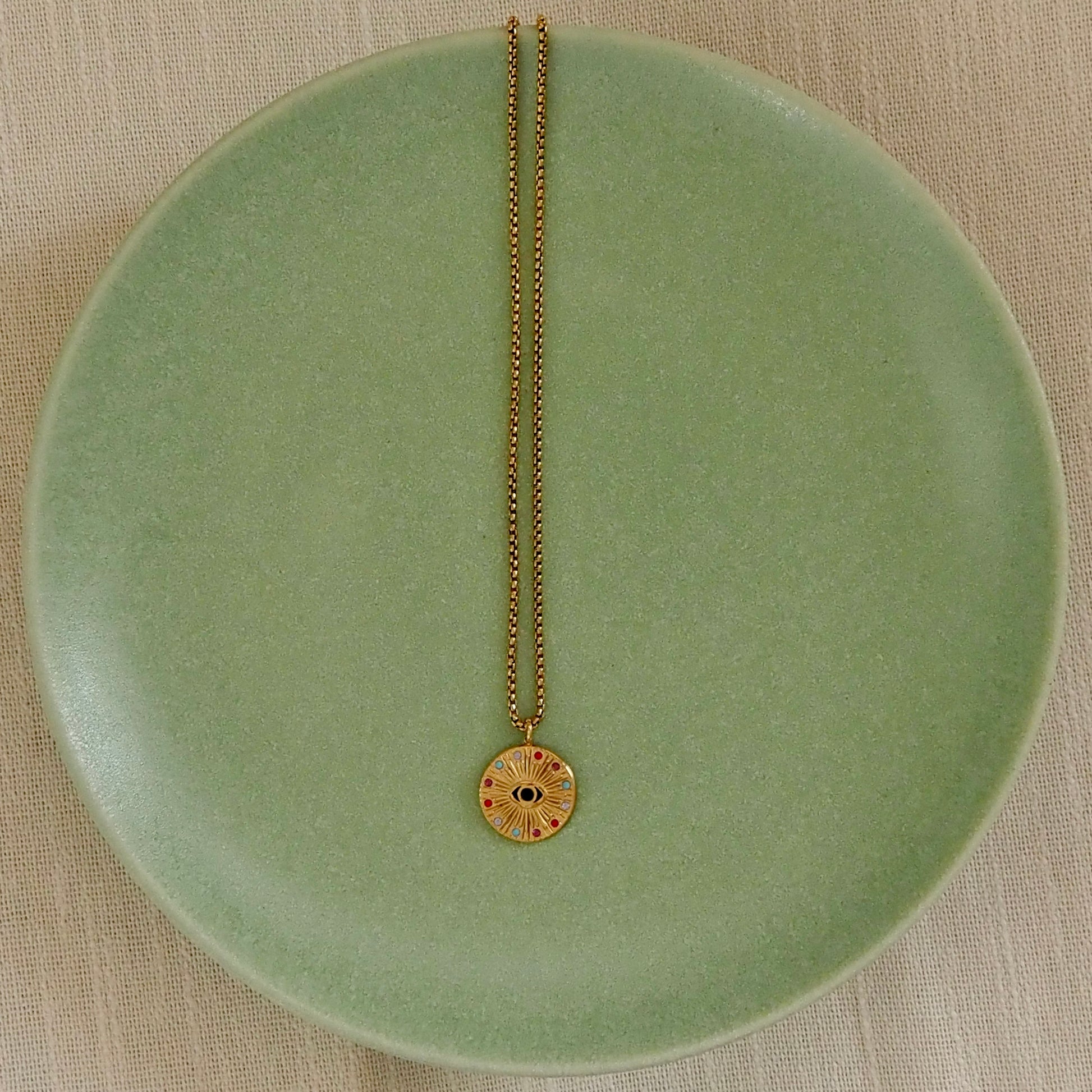 Colgante de acero dorado con detalles de cristal.